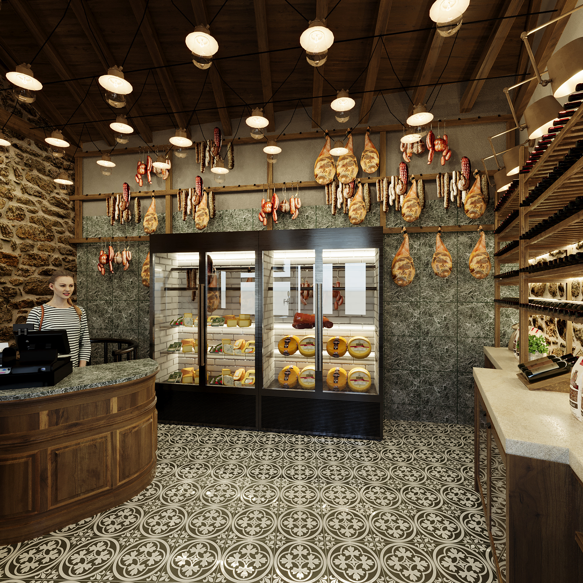 interior design of delicatessen shop